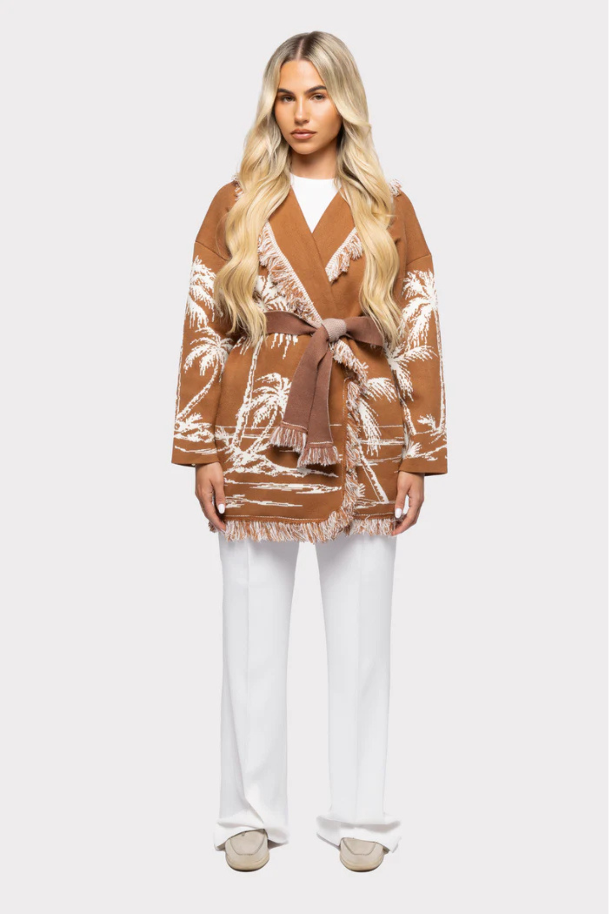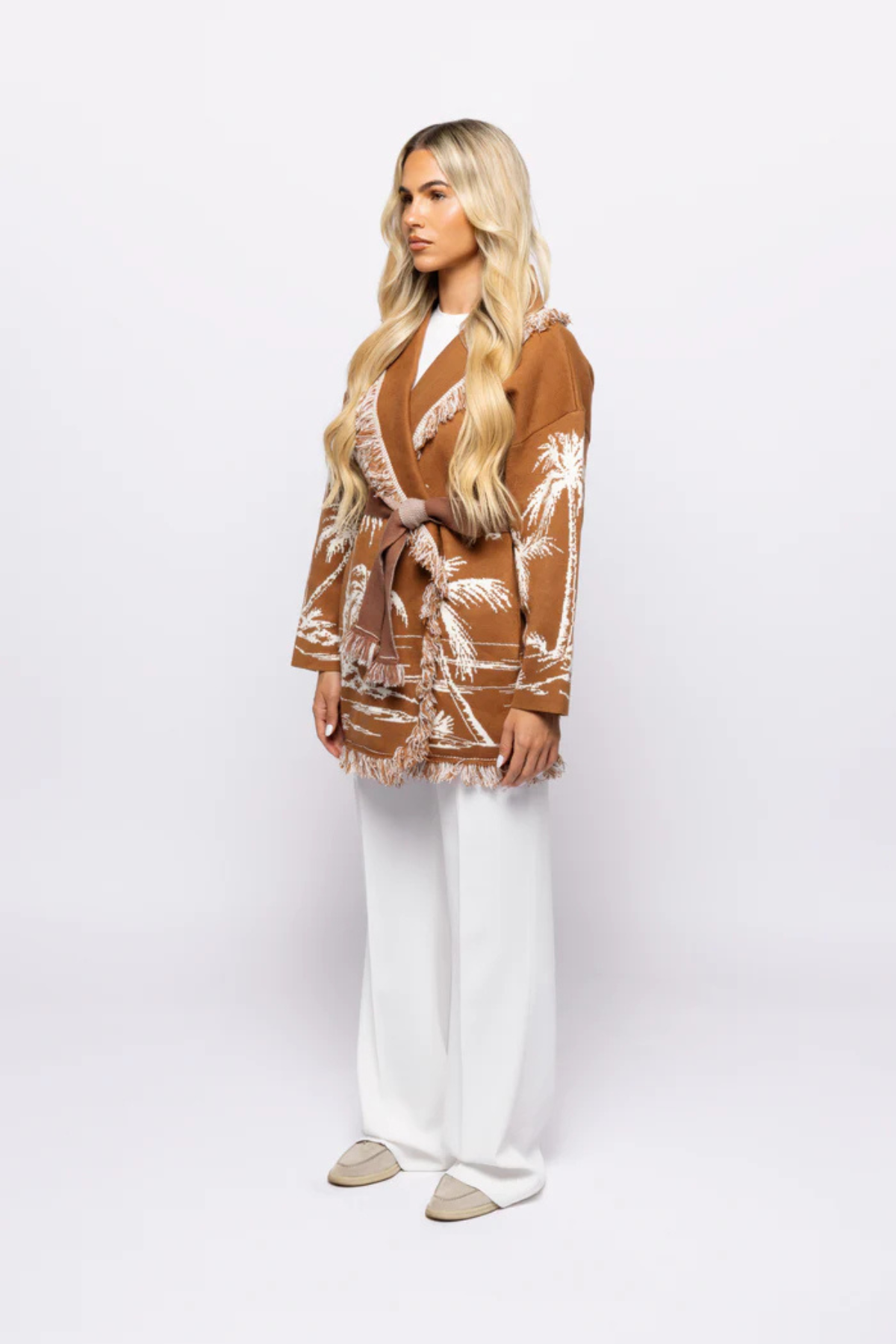 Elevate your wardrobe with our statement printed jackets, designed to combine effortless style with everyday versatility. Crafted with premium fabrics and finished with a belted waist for a flattering silhouette, each piece is detailed with bold patterns inspired by iconic destinations. Perfect for layering from day to night, these jackets bring a touch of luxury and individuality to any look. This Piece is crafted from 50% Viscose, 28%Polyester,22%Pbt