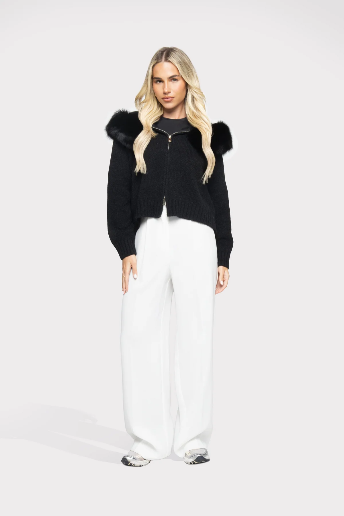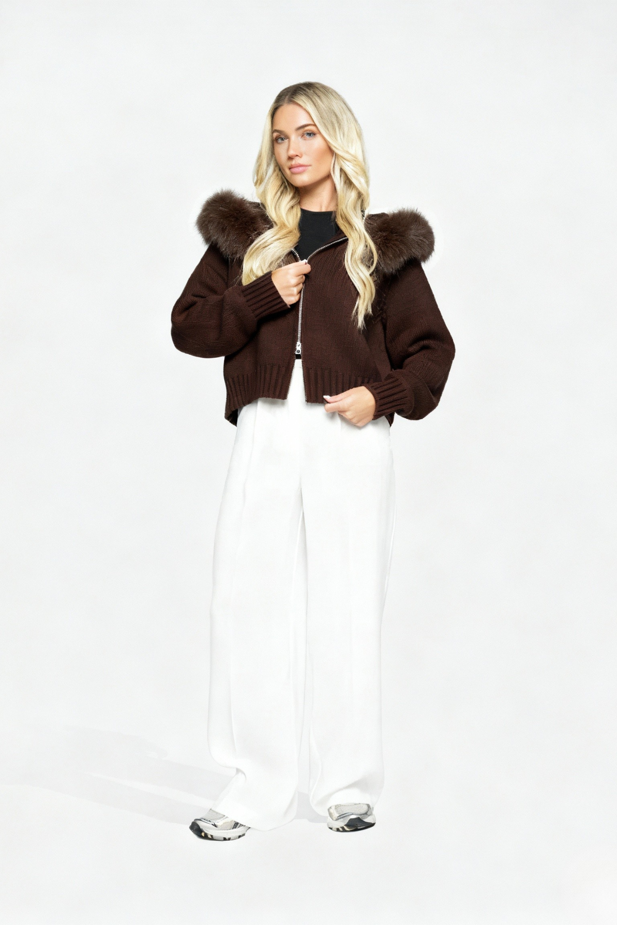 Why Settle to be normal when you can be different. A Wardrobe staple perfect for everyday wear , Airport trip or a girls night out. 80% Wool, 20% Cotton - Zip Up Cardigan - Luxury detachable fox fur hood - Style your cardigan in many ways with or without the fur. Depending on the occasion!